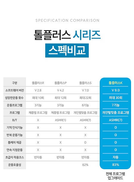 톨플러스 S는 톨플러스 K의 기능을 기반으로 하면서도 성장판 스트레칭 기능이 강화된 모델입니다.