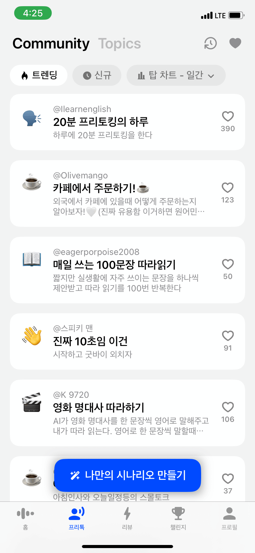 현재 한국에 거주 중이라 영어가 절박하진 않지만, 해외 취업이나 유학을 고려 중이라면 실전 회화 실력을 기르기에 아주 적합한 앱이라 생각합니다.